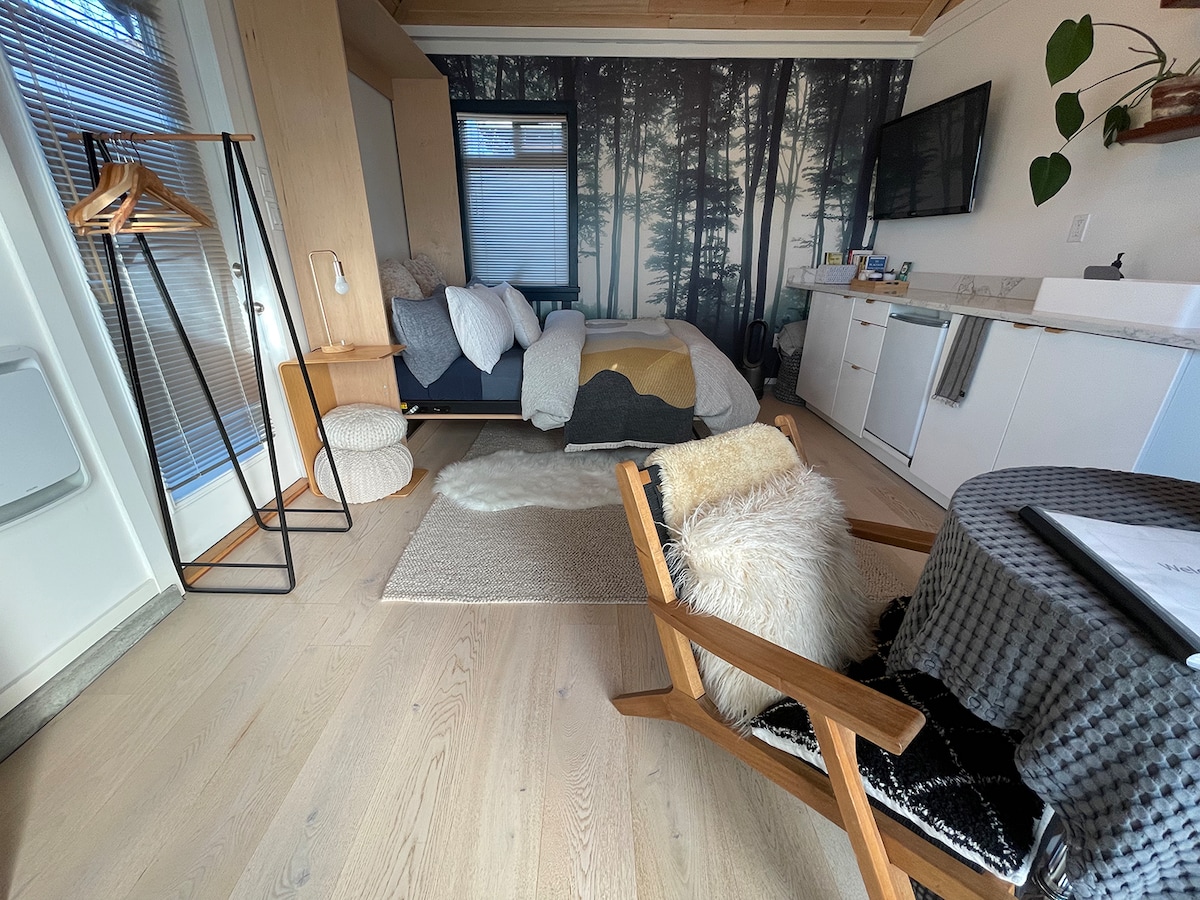 V tomto podkrovním domě na vás čeká moderní pohodlí a útulné kouzlo. Díky útulnému plynovému krbu ve stylu chaty a manželské posteli velikosti king je to ideální místo k odpočinku po dni stráveném objevováním! Tento samostatný dům má plně vybavenou kuchyň, soukromou terasu a moderní koupelnu s vanou. Nachází se hned vedle rušné Commercial Drive, jste jen pár kroků od nejlepších restaurací, barů a butiků ve Vancouveru. A Skytrain je jen 7 minut chůze. Těšíme se, až budeš naším hostem v místě, kde se moderní styl setkává s útulným teplem!