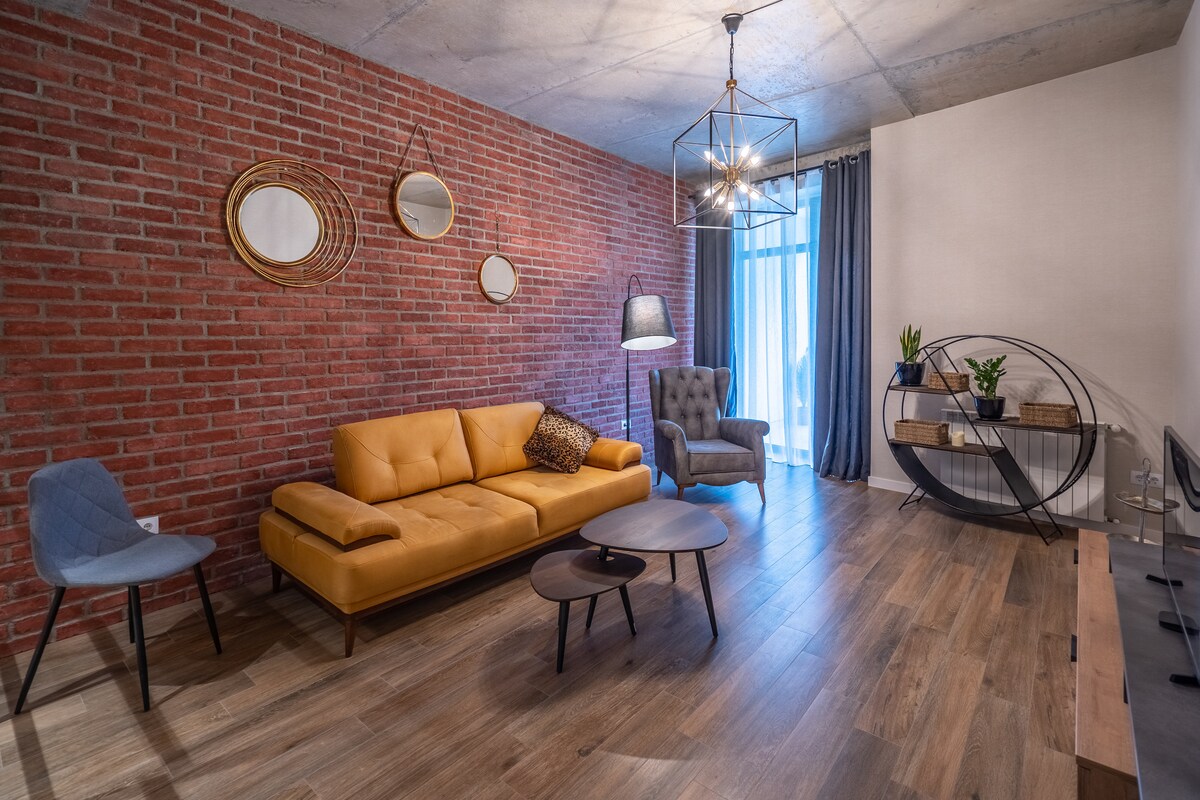 Jedná se o pohodlný zrekonstruovaný byt s holou cihlovou zdí, který je cítit Tbilisi. Tento garsonka má průhlednou koupelnu s moderní vanou, manželskou postelí, pohovkou Chesterfield atd. Prostor (78 m²) je vhodný pro 2 osoby a nachází se ve čtvrti Starý Tbilisi, na ulici rovnoběžné s hlavní třídou Gruzie Shota Rustaveli Ave. Vysokorychlostní Wi-Fi internet a IPTV jsou zdarma. Byt je také dobře umístěn pro dopravu. Stanice metra náměstí Svobody a Rustaveli jsou v docházkové vzdálenosti.