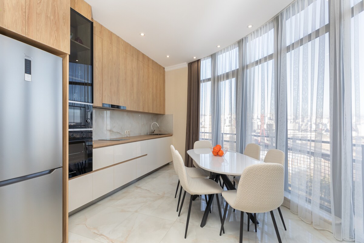 Moderní 2pokojový byt ve 22. patře s úchvatným výhledem na řeku Mtkvari. Navrženo s prémiovými povrchovými úpravami, technologií chytré domácnosti (Alexa) a nejnovějšími spotřebiči. Nachází se na jedné z nejživějších ulic Tbilisi obklopené špičkovými restauracemi, kavárnami a karaoke bary. Užij si 65palcovou televizi, vířivku na balkóně a dalekohled Celestron pro romantické noci plné hvězd. Ideální pro páry nebo kohokoliv, kdo hledá luxusní pobyt.