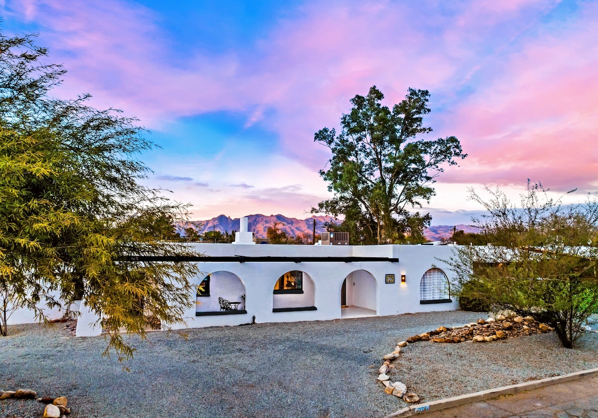 CASITA DEL REY je okouzlující, soukromý, 560 metrů čtverečních velký kovbojský penzion na ohromujícím 5 akrovém pozemku, včetně pickleballového hřiště a stáje se slůny! Máme všechno... kouzlo, přírodu a pohodlí! Nádherný bazén, terasy se západem slunce a možnost vidět osly zblízka! Vybavení: SleepNumber bed, kitchenette, refrig, stove top, basketball court, picnic/BBQ griarea, walking paths, high-speed WiFi/HDTV, shopping/dining/UofA w/in 5 minutes! AirBNB „Nejlepší 1%“ (2020)