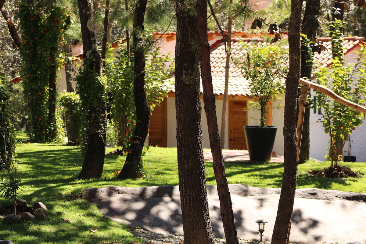 Hermoso Chalet para disfrutar en pareja, permitiendo una experiencia romántica en medio de la naturaleza. Con un diseño acogedor, el chalet cuenta con una vista increíble del bosque, además de estar completamente equipada con los servicios básicos y una tina de hidromasaje con vista panorámica, ofreciendo una estancia romántica y agradable para ti y tú pareja, persona adicional un costo extra de $250