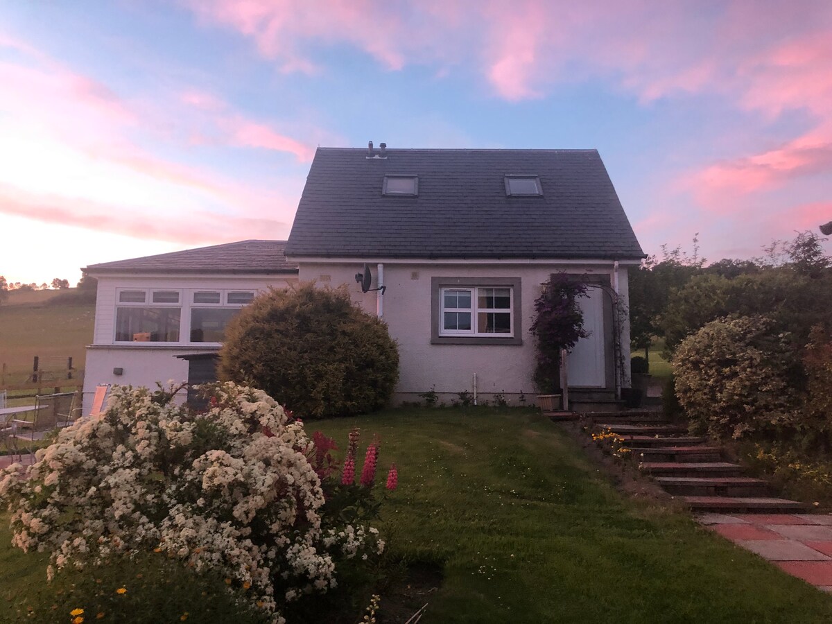 1 ložnice připojená k chalupě v Highland Perthshire, 3 míle od Aberfeldy a Grandtully. Sauna na dřevo v sousedním stavení (1. použití v ceně). Idylicky se nachází na úpatí kopce Farragon, s krásnými procházkami přímo od dveří. K dispozici je prostorná ložnice s manželskou postelí velikosti super kingsize (nebo dvě samostatná lůžka), velkolepý obytný prostor, moderní kuchyně a sprchový kout, soukromý vchod, parkoviště a venkovní posezení. Všimněte si umístění domu, jak je podrobně popsáno v „domácích pravidlech“ (na zimu se doporučuje 4wd)
