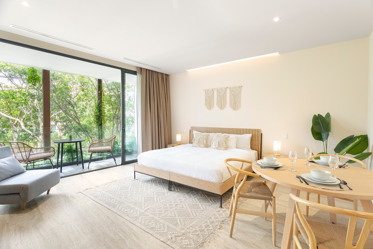 ✨ Live your best Tulum life in this chic & serene suite 🌴@Menesse Tulum, the💖of town! Just a short 🚲/🚗 ride to the hottest beach clubs, soak up the sun in the stunning infinity pool 💦, and get pampered with top-notch amenities. 🌅 But wait, there's more! Head up to the rooftop oasis for jaw-dropping sunset views that will take your breath away✨ Need help planning your dream vacay? Our concierge service is here to make it happen😉