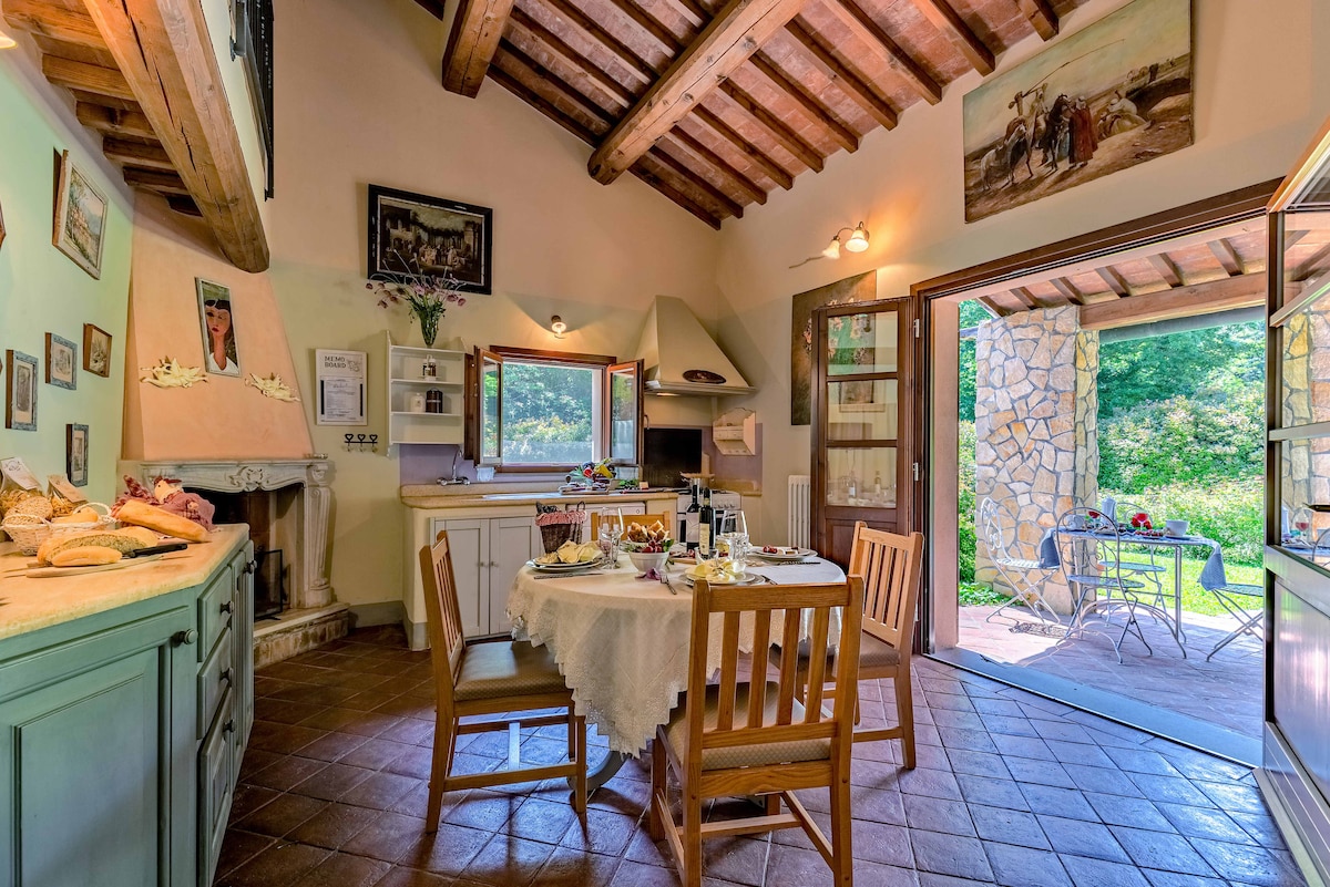 Ve starobylém venkovském komplexu Caggio nabízí "Il vecchio noce" kompletně zrekonstruovaný apartmán, který pojme 2 až 4 osoby. Komplex se nachází v samém srdci toskánského venkova, na kopci Montagnola senese, v blízkosti středověkého městečka Monteriggioni a trasy Via Francigena.