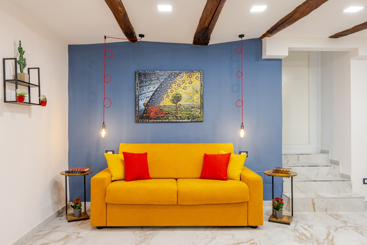 Luxusní apartmán s moderním designem, dokonalá syntéza moderny a tradice. Nachází se na ulici Via Tribunali, v pulzujícím srdci historického centra Neapole, a je ideálním místem pro regenerační pobyt a jedinečný zážitek. Místnost s odkrytými trámy a jasnými barvami se vyznačuje exkluzivními designovými detaily. Byla navržena tak, aby pozvedla váš emocionální stav a otevřela vám dveře k objevování divů tohoto města