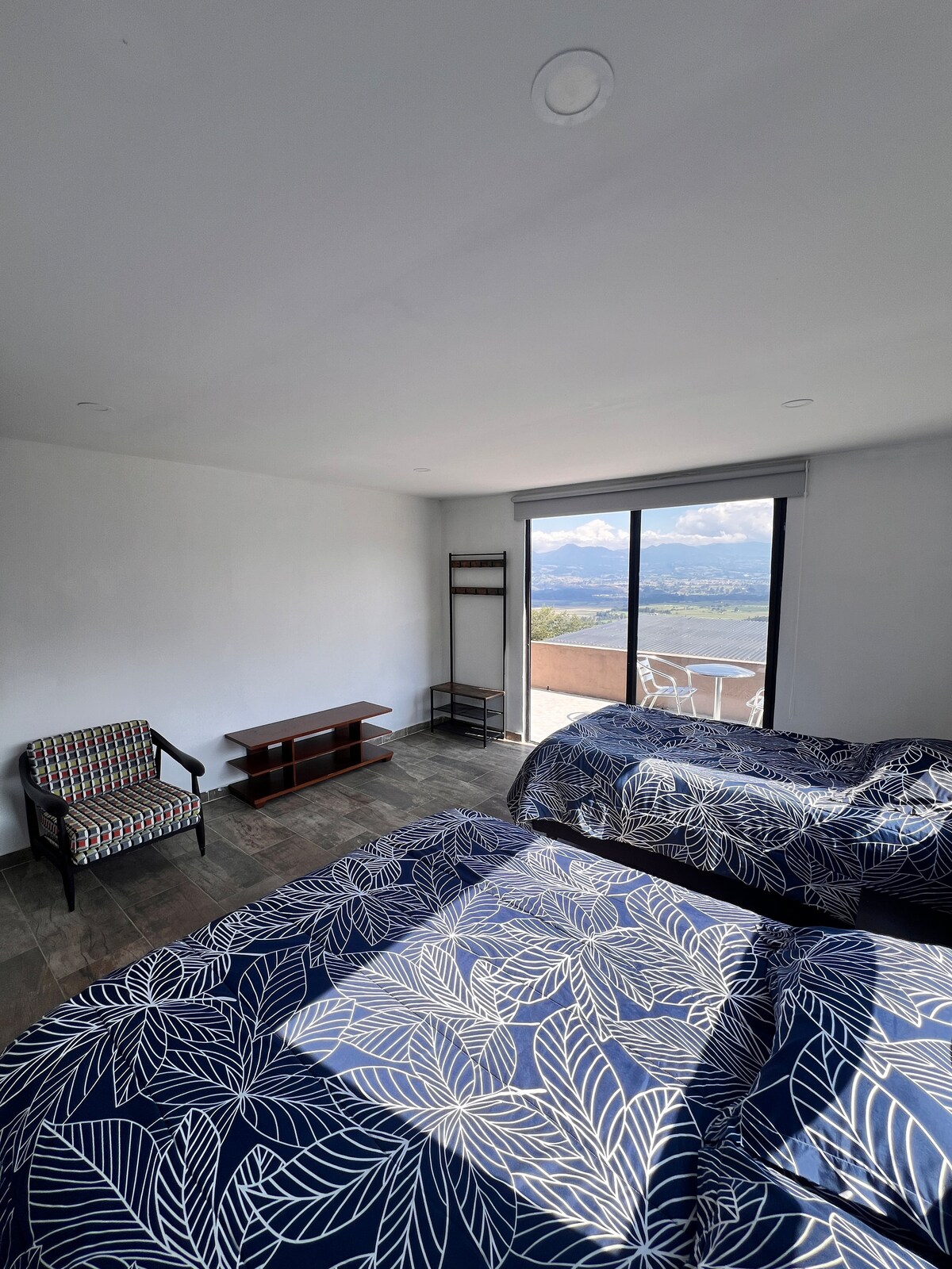Objevte luxus naší borovicové chaty, elegantního útočiště obklopeného přírodou a pouze 7 minut od centra Chiquinquirá. Je ideální pro páry nebo jednotlivce a nabízí dvě velmi pohodlné manželské postele, vlastní koupelnu a útulný design. Odpočiňte si venku u stolu se slunečníkem, v prostoru pro grilování 🍖 a u útulného ohniště🔥, ideální pro kouzelné chvíle pod hvězdami. Rezervujte si pobyt a zažijte nezapomenutelný zážitek plný pohodlí a klidu.