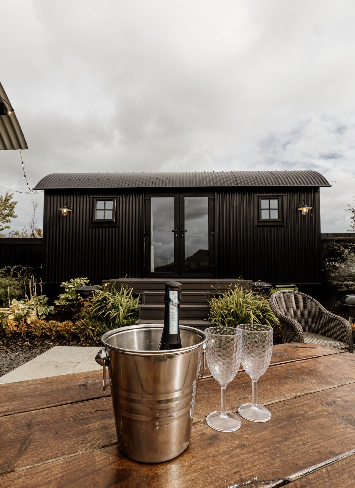 Enjoy a relaxing and romantic break in our hand crafted Shepherd’s Hut just outside Portglenone in the County Antrim. The Stone Wall Hideaway provides self catering accommodation with free parking on site, as well as unlimited access to your own private hot tub that is heated for your arrival! Hampers are available to purchase. They are perfect for breakfast, fire pit/ s’mores, a special event, celebration or just something to add a little extra to your stay. Send us a message for more details