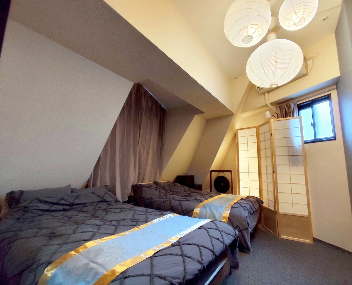 Tradiční ložnice. Skvělý přístup do USJ a Dotonbori! Ubytování až pro 8 osob. NETFLIX