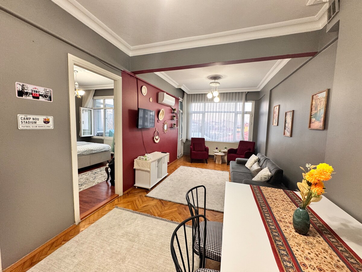 náš moderní a stylový podkrovní byt, který má velkou terasu, je 1+1. Má celkovou kapacitu pro 4 osoby na spaní it is in a very central location 1 minute from the metro. jsou zde obchody jako obchod s potravinami, řezník. náš byt se nachází ve třetím patře a není zde výtah. (máme několik dalších bytů pro velké rodiny ve stejné budově) (na žádost hostům organizujeme jednodenní prohlídky Istanbulu navíc)