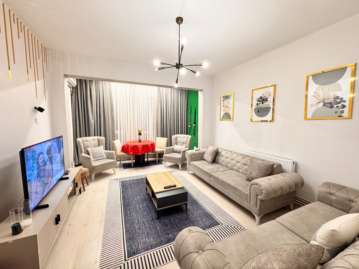 Zažij pohodlí nového a bezpečného bydlení! Hned pod ní se nachází stylová restaurace, kterou lze považovat za luxusní, a jeden z nejkvalitnějších kavárenských řetězců v zemi. Velký park před rezidencí, restaurace s vynikající kuchyní a 3. Je tam kavárna Nesil. V okolí je řetězový trh. V areálu je k dispozici bazén a posilovna, které mohou naši hosté využívat. Před areálem je spousta bezplatných parkovacích míst pro vaše vozidla. Zařízení je chráněno nepřetržitou ostrahou.