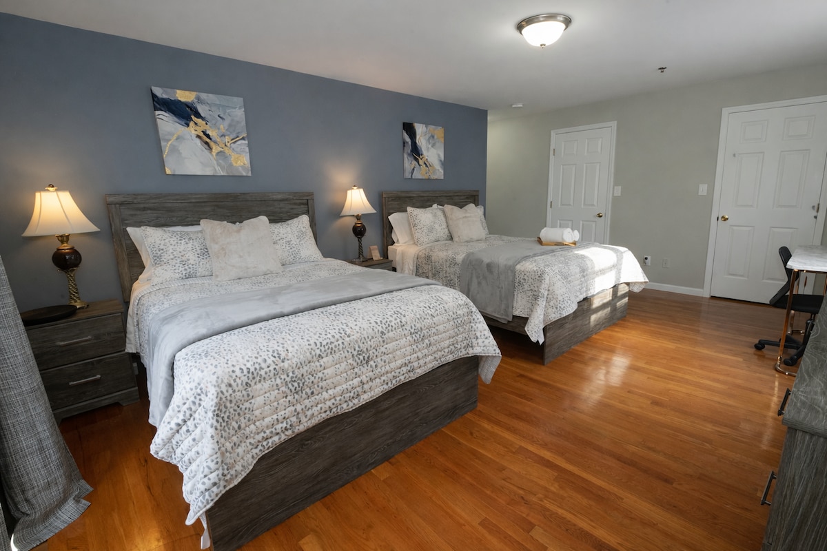 Prostorný 2BR/2BA v blízkosti letiště Newark, ideální pro dlouhodobé pobyty, služební cesty nebo přestěhování. Plně vybavená kuchyně, útulný obývací prostor a rychlá Wi-Fi. Železniční stanice Elizabeth je vzdálena 6 minut jízdy / 15 minut chůze → NYC za 30 minut. Sazby jsou vše v ceně, bez poplatků za úklid. Slevy na pobyty delší než 14 dní a měsíční pobyty. Letiště EWR: 7 minut jízdy Autobusová zastávka: 1 minuta chůze Nemocnice Trinitas: 7 minut jízdy Union College v Union County: 4 minuty jízdy Kean Univers: 10 minut jízdy Místní obchody a restaurace: pěší vzdálenost