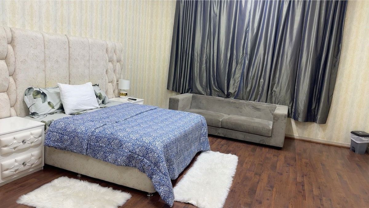 Featuring a cozy bed, sofa, glass coffee table, and a bright work desk by the window with indoor plants. Location Highlights : Just 15 minutes from the airport 2 minutes walk to Khalifa Square Park 5 minutes to Khalifa Market & Lulu Hypermarket Free parking available 10 minutes walk to the bus stop Whether you’re traveling for work or leisure, this studio is the ideal spot to enjoy a relaxing and convenient stay.