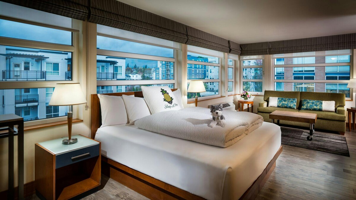 Kimpton Palladian, který se nachází jen pár kroků od trhu Pike Place Market a mezi nejlepšími restauracemi a ruchem centra Belltownu, působí spíše jako stylový městský byt než hotel. Vychutnej si koktejly v náladovém baru, dej si večeři v restauraci nebo si zacvič v fitness centru, než se město probudí. Díky odvážnému designu, každodenní hodině vína a atmosféře, která je spíš místní než lobby, je to druh pobytu, do kterého se budeš chtít vrátit – domácí mazlíčci jsou vítáni.