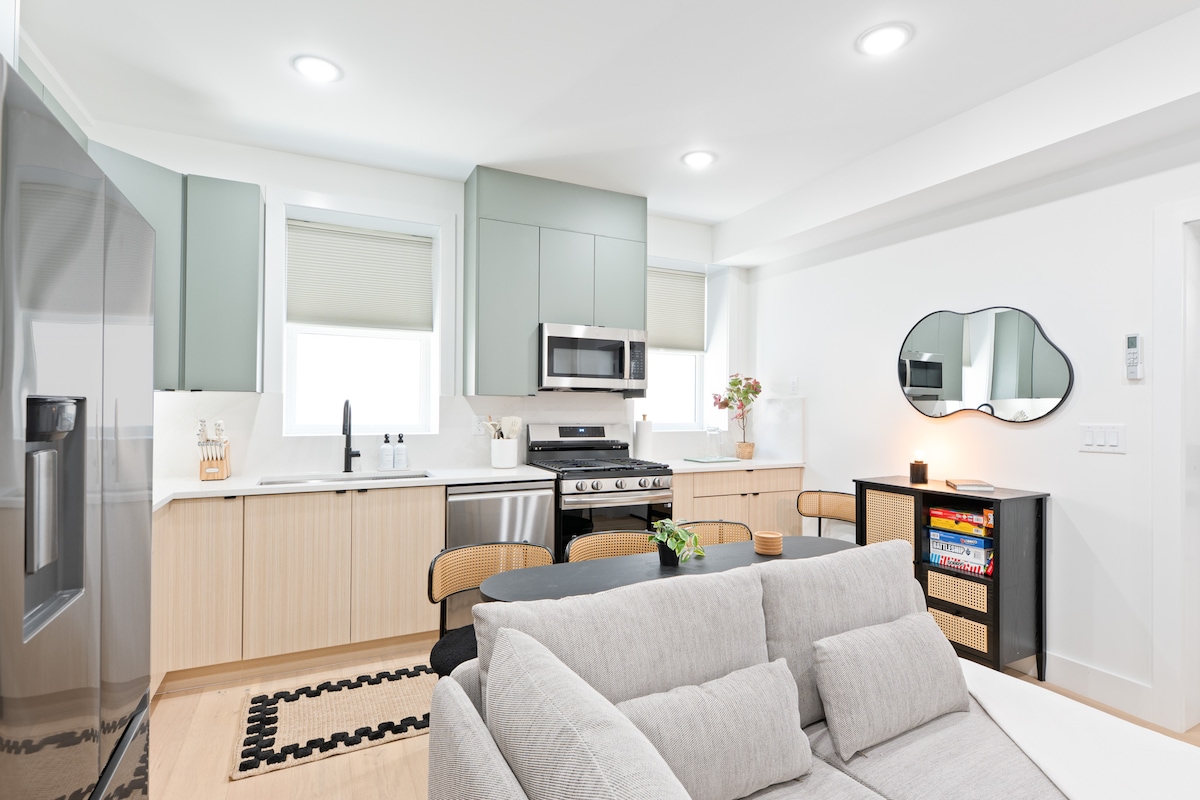 This one-of-a-kind luxury brownstone, with parking, is located on one of Hoboken‘s prettiest streets. This warm and inviting home has 2 bedrooms and 2 full baths with an in-unit washer/dryer. The home’s beautiful wooden doors open into a chefs‘ kitchen with an oversized island that has four barstools and a wet bar. Entertain with your indoor grill and six-burner stove. A lovely office space is on one side of the kitchen and on the other is a living room and dining room table for eight.bookings