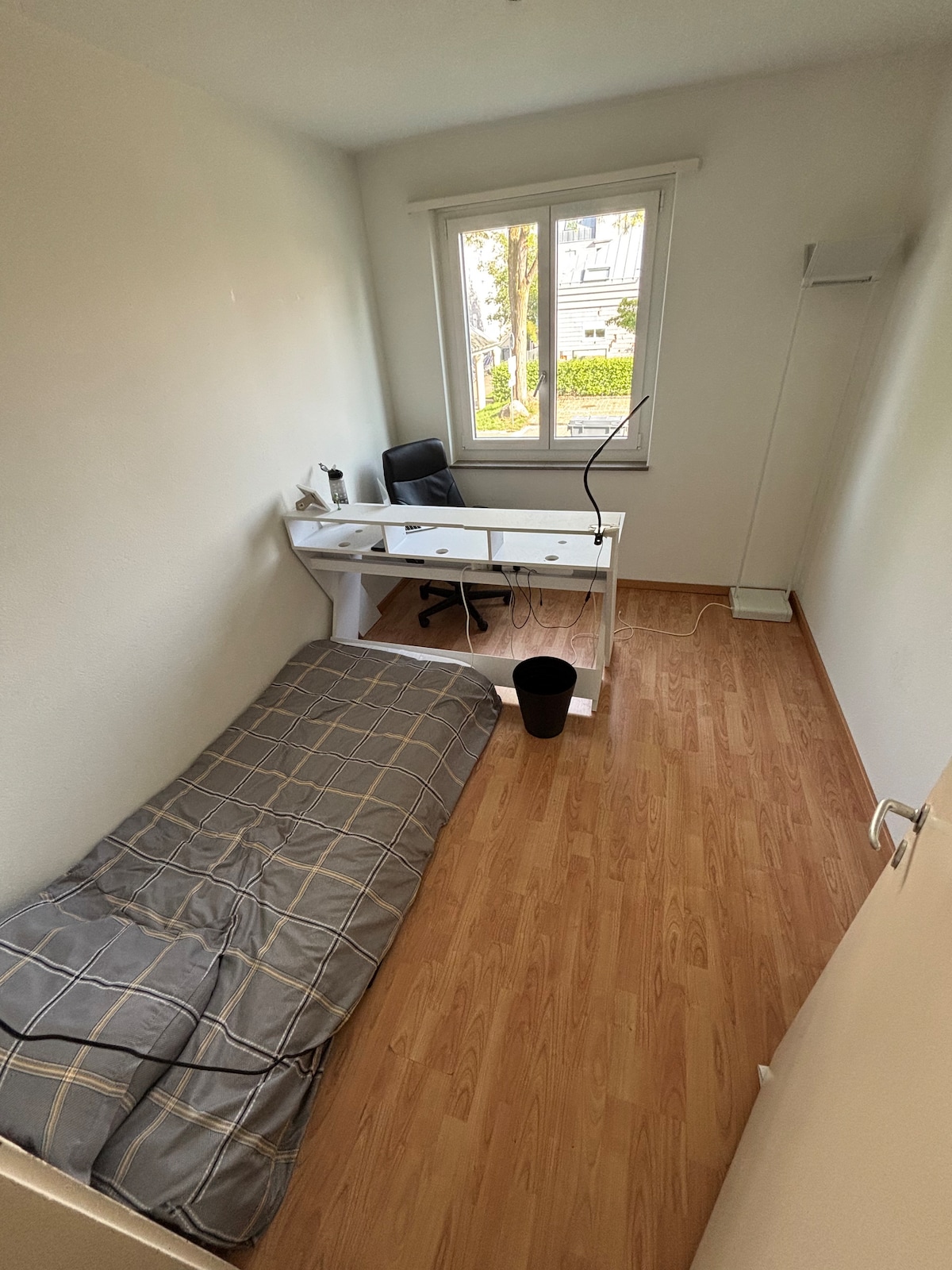 Pokoj v moderním bytě v Curychu. Vlastní koupelna. Společné využívání obývacího pokoje, kuchyně, zahradního posezení a s pračkou a sušičkou. Špičkové spojení městskou hromadnou dopravou (Tram&Bus přímo před dveřmi), dálnice 3 min. Pokoj má postel (90x200, rozšiřitelná na 180), stejně jako pracovní prostor s obrazovkami a výškově nastavitelným. Police a věšák na prádlo. Ty Přístup k sedadlu. Parkování je možné přímo v budově (parkovací hala a modrá zóna).