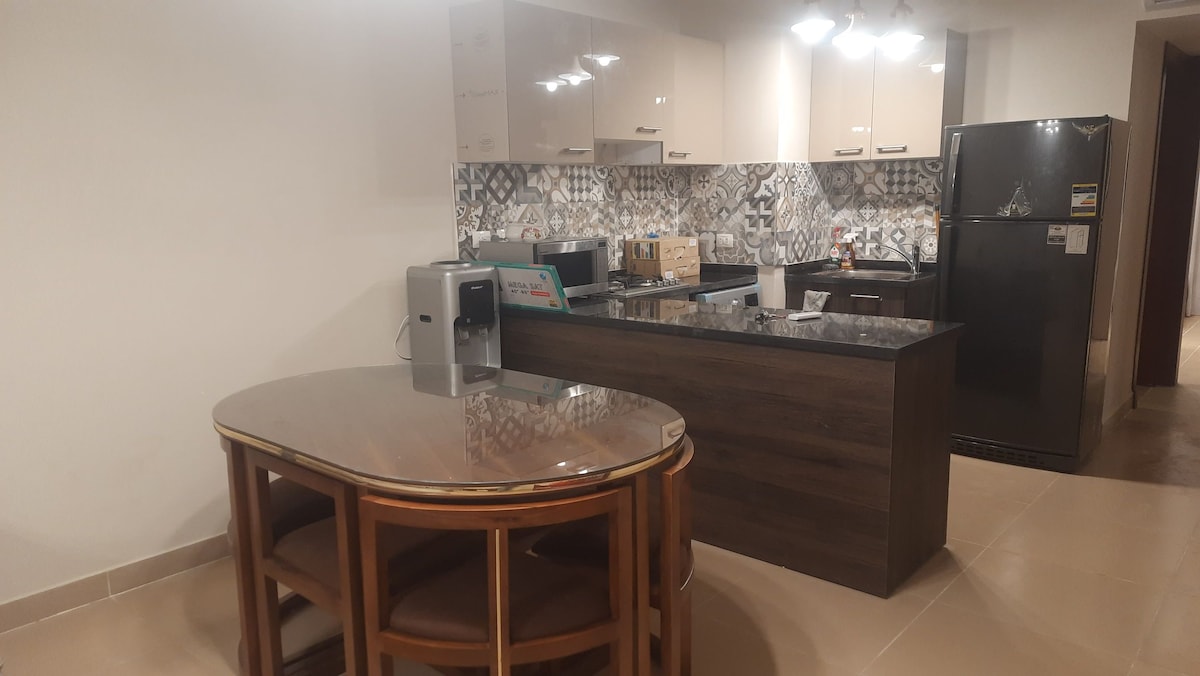 Moderní apartmán se 2 ložnicemi uvnitř hotelu Elite Tulip, Ain Sokhna. Plně vybaveno kuchyní, Wi-Fi, klimatizací a tichým výhledem do zadní části. Ubytuje až 4 hosty. Volný vstup na soukromou písečnou pláž, k bazénům a do hotelové haly. Placené služby: restaurace, prádelna a posilovna. Ideální místo pro relaxaci u moře s pohodlím domova a výhodami letoviska.