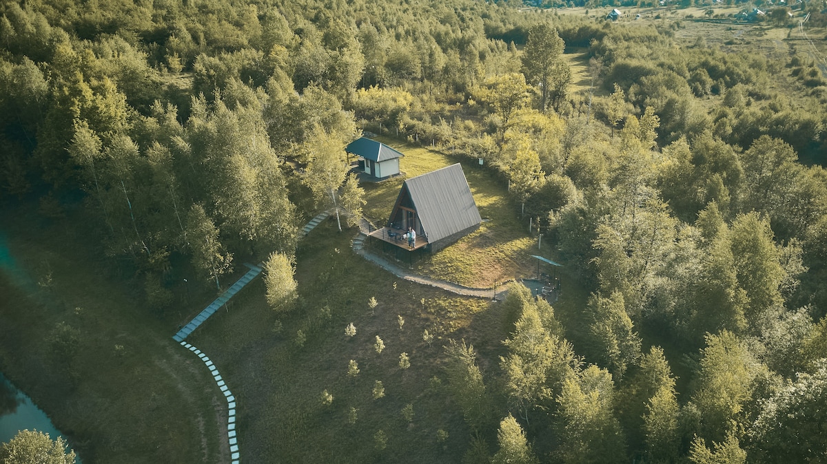 Dobrede jsou útulné trojúhelníkové chaty pod lesem, na soukromém pozemku s jezerem, altánem a grilem. Nedaleko je potok a řeka, která dodává zvláštní kouzlo. Na místě je k dispozici vířivka po předobjednávce. Každá chata pojme až 4 osoby: ve druhém patře je manželská postel, v prvním patře je rozkládací pohovka. Chaty mají plně vybavenou kuchyň, která ti umožní vařit sám/sama.