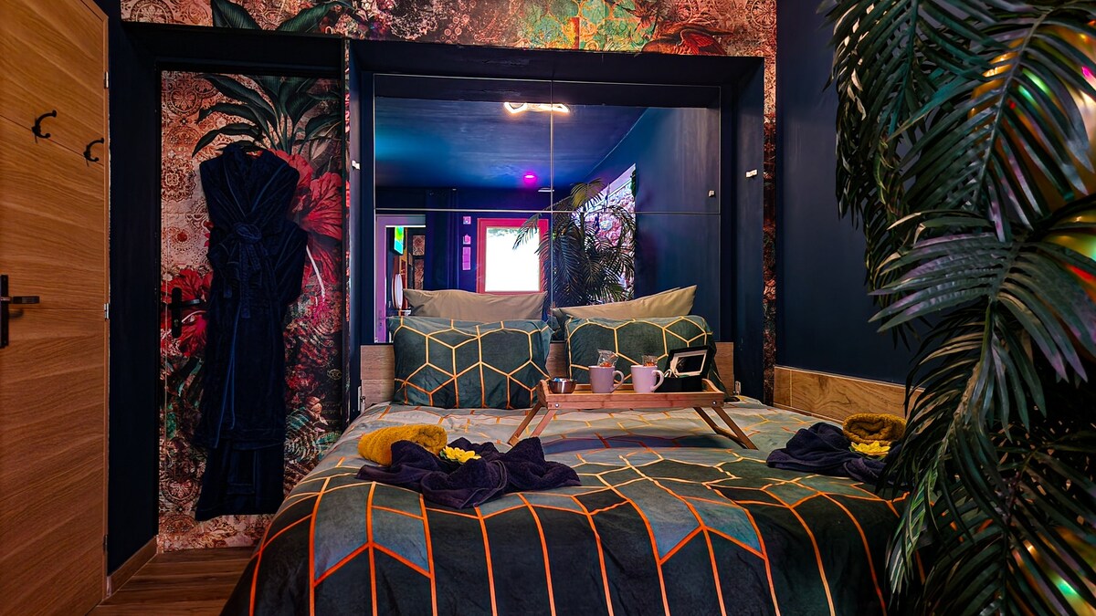 ❤️🔥 Objev luxusní SAMET a KŮŽI Love Room na 20 minut od Paříže, ideální pro romantický a sexy pobyt ! 💎 Vířivka, soukromá sauna, manželská postel s efektem obláčků, striptýzová tyč, tantrická pohovka atd. 💋 Prozkoumej nové pocity a společně vytvoř nezapomenutelné vzpomínky v neuvěřitelně vybavené tajné herně bdsm 🎬 92" Cinema face to the bed with Netflix, Prime Vidéo, Disney+, Spotify 💫 Unikni do útočiště klidu a luxusu pro jedinečný a nezapomenutelný zážitek !
