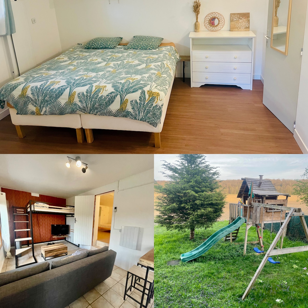 Byt se nachází 20 minut od Disneylandu, 20 minut od výstaviště Villepin, 30 minut od Paříže, nedaleko CDG, Meaux, Torcy beach a Jablines do 10 minut. Byt je zrekonstruován v prvním patře pěkného domu se samostatným vchodem s terasou, který zahrnuje 2 ložnice, 1 rozkládací pohovku, 1 kuchyňskou část + jídelnu, 1 koupelnu, 1 hernu. Na zahradě: trumpeta, houpačka, klouzačka a lavička na cvičení k dispozici.
