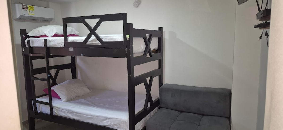 Apartaestudio, muy cómodo, todo nuevo: somier+ colchón, TV smartv, sofá cama, wifi, nevera, baño privado. Cerca de todo, centro comercial 2,5 km, almacén de cadena 1 km, parque la provincia y monumentos 3,5 km. muy accesible, disponibilidad de taxis 100%. Cuenta con estufa eléctrica, cafetera Dolce, sanduchera, exprimidor, destapador, descorchador, vajilla, vasos, utensilios de cocina