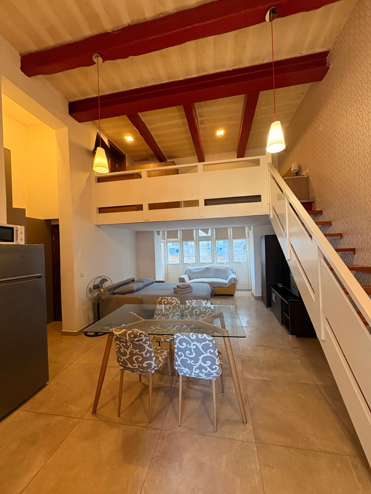 Enjoy direct street access to this beautifully designed and fully air-conditioned studio maisonette, perfectly located in the heart of Valletta — just minutes away from the city’s top attractions, restaurants, and cultural gems. The space features a cosy double bedroom, a modern bathroom, and a fully equipped kitchen with a comfortable living and dining area. Step out onto one of the two charming balconies to soak in the vibrant city atmosphere.