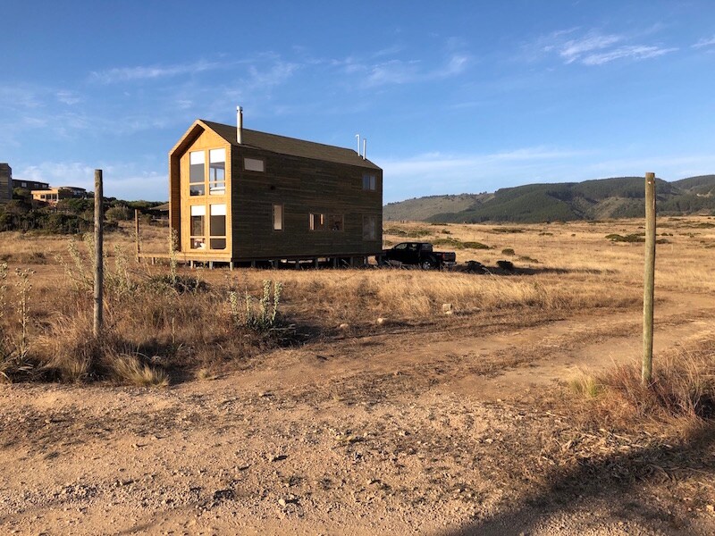 V Punta del Gallo, Tunquén, mezi Quintay a Algarrobo, udržitelný prostor pro relaxaci a spojení s přírodou. Polní cesty, dřevěné ploty, 2 malé pláže vzdálené 2 minuty jízdy autem, potoky, studny. Dřevěný dům, 72 m2, dvojitá výška, vynikající výhled a spousta světla. Jedna ložnice s manželskou postelí s výhledem na moře a druhá se 3 samostatnými lůžky (palandy), obě s kamny. Kuchyně, obývací pokoj a jídelna jsou propojeny s terasou, grilovací mřížkou, plážovými židlemi a skládacím stolem s lavicemi. Kamna na dřevo Bosca.