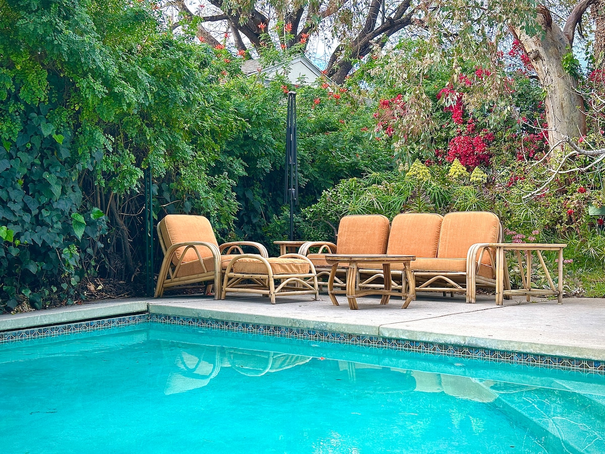 Toto útulné studio, které je oddělené od hlavního domu, je zasazeno do atmosféry tajemné zahrady a nedávno bylo modernizováno o novou koupelnu a kuchyňský kout vybavený mikrovlnnou troubou, varnou deskou, mini ledničkou/mrazničkou a kávovarem na espresso. K dispozici je také Wi-Fi, Apple TV a super pohodlná postel. Blízko restaurací, Universal Studios, Whole Foods, Trader Joe's a parků. Skromné, ale se vším, co potřebuješ. Budeme rádi, když přijdeš a užiješ si to!