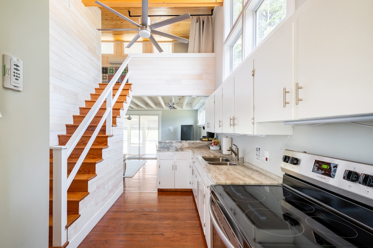 ZBRUSU NOVÝ (2022) srub u jezera A-Frame Cabin. Moderní v polovině století. Zamiluješ si stylovou chalupu a veškeré venkovní bydlení/hraní. Blízká procházka k vlastnímu soukromému doku (2 lodní skluzavky) a lodní rampy poblíž. Nachází se přímo u Kerr Lake (aka Buggs Island). NOVINKA pro rok 2024; VŠECHNY NOVÉ KOUPELNY, NOVÝ stabilní internet, betonový chodník, terasa s ohništěm Solostove, NOVÁ vířivka, světla na terase, plynový gril, venkovní sprcha. Vynechané hračky; vůz na přepravu, dětský kajak, kajak pro dospělé, paddleboard a plážová křesla.