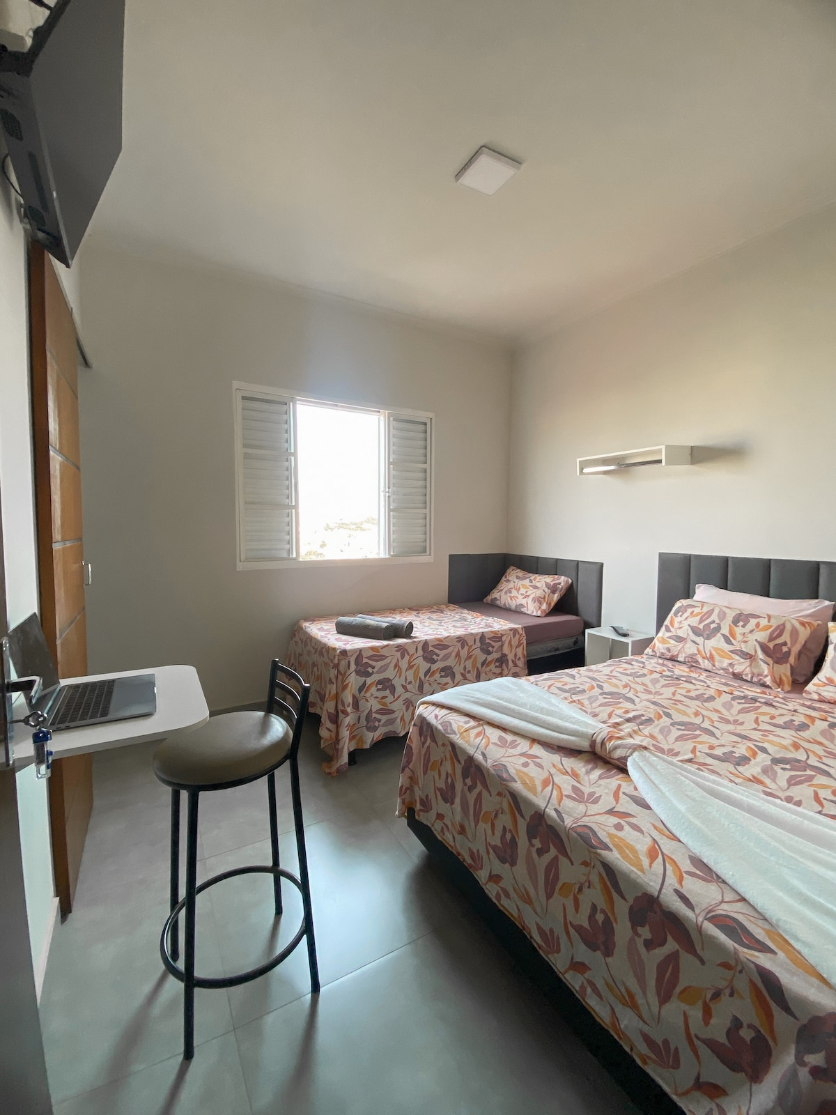 Získej celou rodinu na toto skvělé místo, útulný a prostorný byt. With capacity for up to 5 people (02 sofas, 01 double bed, 03 single beds, 02 rooms one being a suite, service area, full kitchen, garage for 01 car, 01 bathroom and TV.