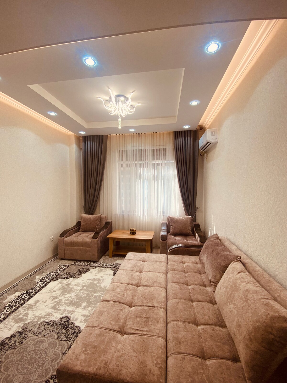 Užij si svůj pobyt v klidném 92. okrese Dušanbe! Apartmán se nachází v klidné rezidenční oblasti s kavárnami, pekárnami a supermarkety v blízkosti, hned vedle Somoni Avenue — jen 10–15 minut do centra města taxíkem nebo veřejnou dopravou. Byt je prostorný, čerstvě zrekonstruovaný, čistý, s rychlou Wi-Fi a všemi nezbytnostmi. Bezpečný komplex nabízí výtah, hřiště a nonstop kamery. Hostitelé mluví anglicky a rusky a rádi pomohou s transferem, SIM kartami a dalšími místními tipy.