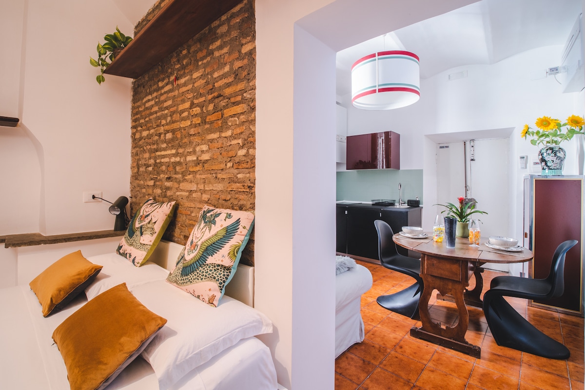 Zapal velký kamenný oheň a relaxuj s knihou v tomto elegantním domě s výhledem na Via dei Banchi Nuovi. Kazetové stropy pokrývají útulné pokoje v relaxačních, neutrálních tónech zvýrazněných designovým nábytkem a originálními malbami majitele. Tento okouzlující, kompletně zrekonstruovaný dům se nachází v jedné z nejkrásnějších, nejstarovějších a nejživějších oblastí centra Věčného města. Rádi také nabízíme ekologicky udržitelnou pohostinnost: používáme elektřinu z obnovitelných zdrojů, organické produkty.