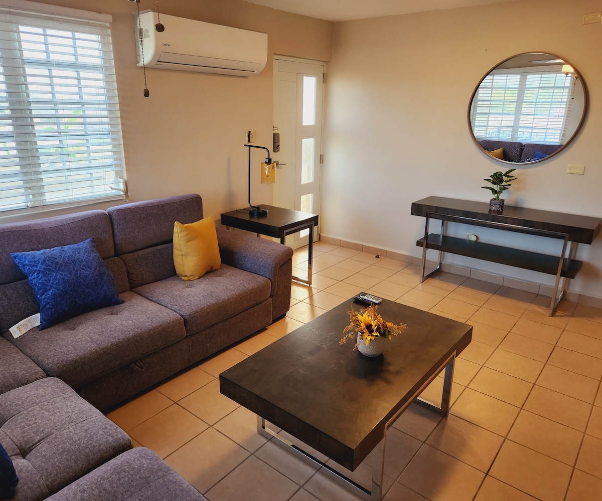 Tento PR AIRBNB je vlastně útulný druhý domov / rekreační dům expatky z Ponce (Eve), který právě dokončila malovat, renovovat a plně zařídit. Doufáme, že se stane i tvým druhým domovem nebo rekreačním objektem! Zaparkuj na příjezdové cestě, zapni zbrusu novou klimatizaci v obýváku, dej si něco k zakousnutí, napij se, dej si horkou sprchu v plně zásobené koupelně, vyspi se v našich nových postelích s extra pohodlnými matracemi a probuď se svěží další den připraven/a užít si PR!