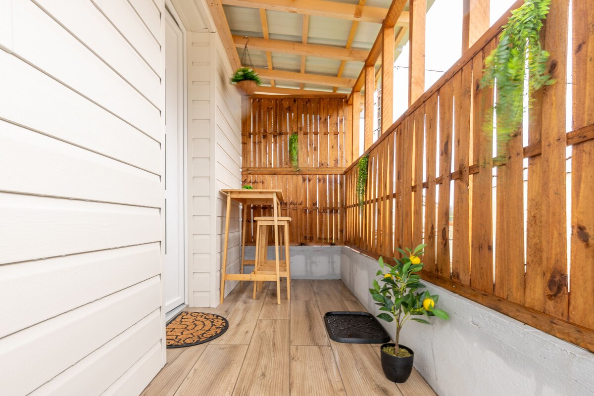Tento přístavný objekt se skládá z ložnice o rozloze 14 m2 (jedna manželská postel a jedna samostatná postel 100/200) Obývací pokoj / kuchyně o rozloze 18 m2 s rozkládací pohovkou typu BZ. Kuchyně je vybavena toustovačem, mikrovlnnou troubou, varnou konvicí, lednicí, kávovarem Senseo, plynovým sporákem, horké nápoje jsou zdarma, stejně jako sladkosti pro malé i velké! Venku na vás čeká zahradní stůl se židlemi, pokud si chcete po probuzení užít slunění (k dispozici je gril)