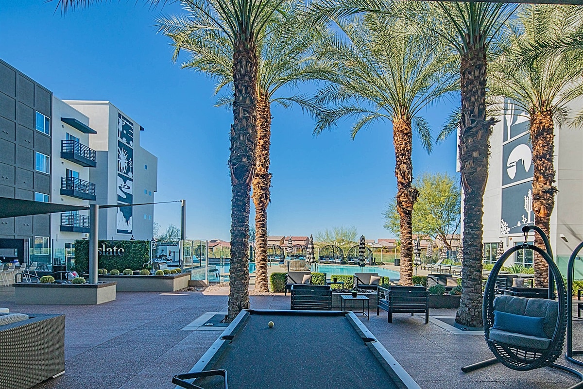 💛 Resort-style North Scottsdale vacation rental with heated pool 🏝️, spa hot tub 💦, full fitness center 🏋️♀️, rooftop sky deck 🌄 with BBQ grills 🍖 + sunset views, fast WiFi ⚡full kitchen 🍳, 2 king beds 👑Close to Fairmont Princess 🎀 (~1.5 mi) and TPC Scottsdale ⛳ (~3.1 mi), plus minutes to Kierland dining 🍽️, nightlife 🍸 & shopping 🛍️. ❣️Multiple units available for groups!❣️👉 Sonder cancellation guests: Message us before booking for an extra 10% off! 🎗️ The Palacio Properties