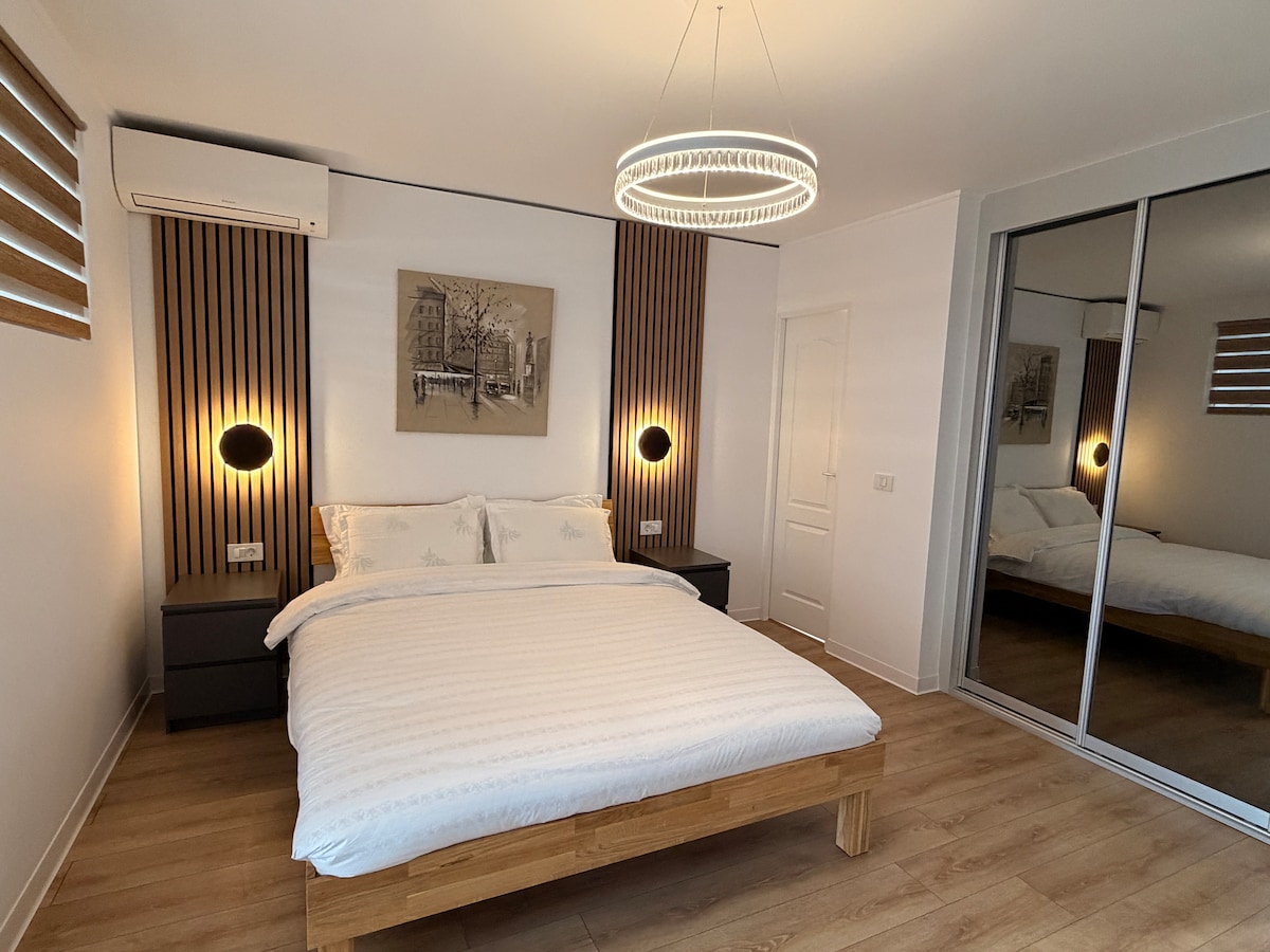 Amazing newly refurbished 2 Bedroom apartment just 5 minutes drive from Focșani! Welcome to our little nest, which can accommodate up to 5 people, with following rooms : ● 2 x dvoulůžkové ložnice ● 1 x kuchyň s jídelnou ● 1x Obrovský obývací pokoj ● 1 x koupelna + další toaleta ● 2x balkony s výhledem na naše okouzlující městečko Byt se nachází pouhých 5 minut jízdy od hlavního města Focșani a je také spojen autobusem do centra města. Obchody 2 minuty chůze Buď jako doma!