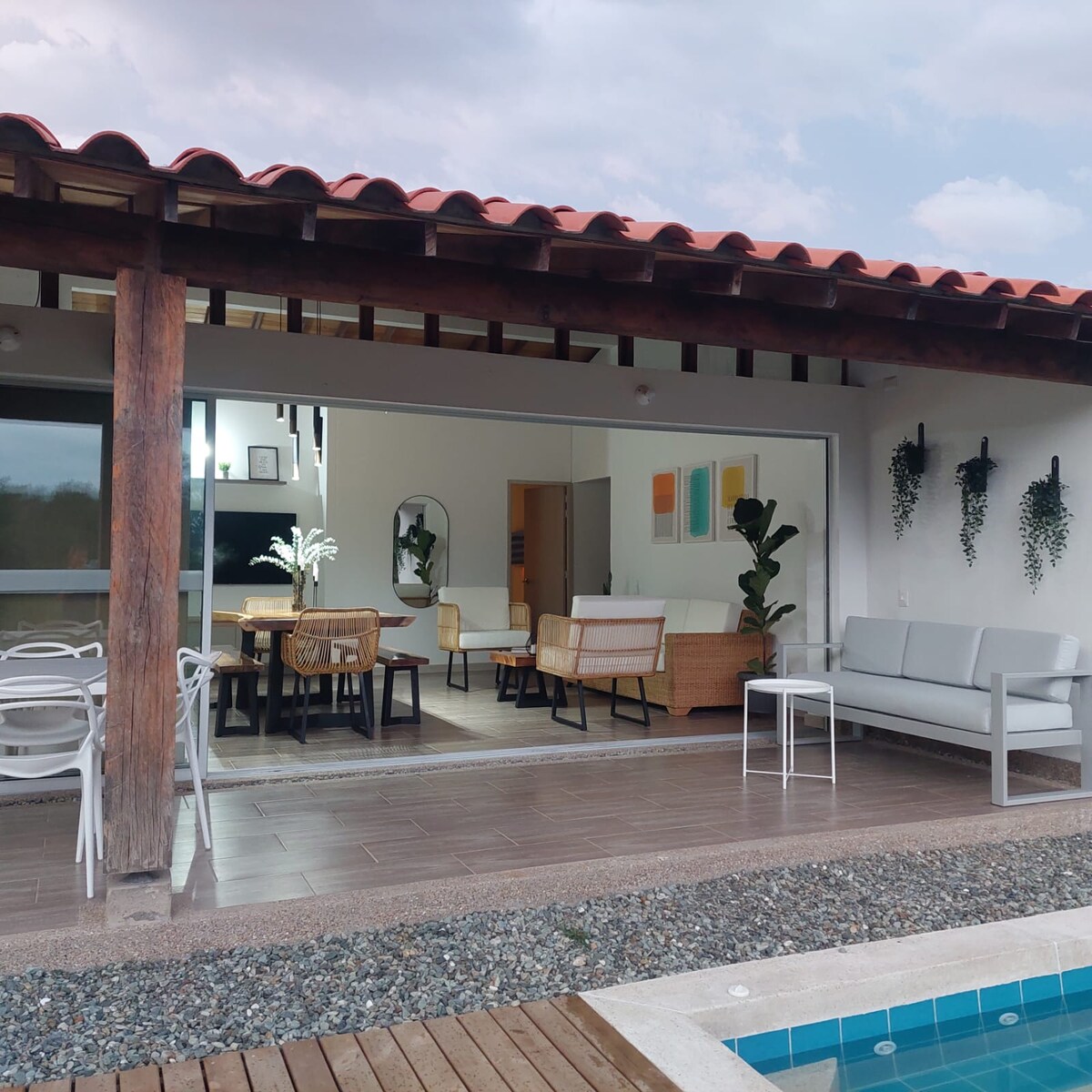 Vítej v našem útočišti v Quindío! Objev klid ve 4 útulných pokojích s 9 lůžky. Odpočiň si na zahradě a u bazénu. Připrav si lahůdky ve vybavené kuchyni nebo využij zahradní gril. Se 4 koupelnami zaručujeme pohodlí. 5 minut od Parque del Café a 20 minut od Panaca, jsme blízko všech turistických atrakcí kávového departementu. Tvůj dokonalý únik do přírody a zábavy! Těšíme se na vás!
