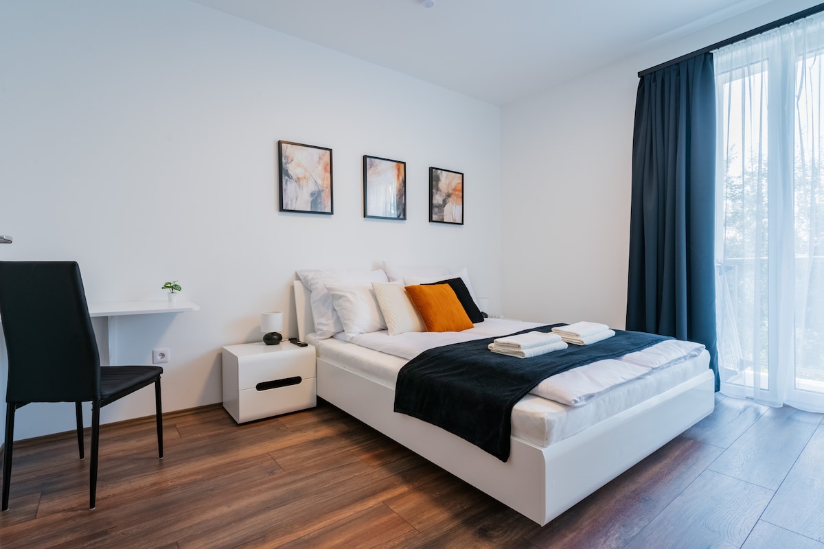 Útulné nové studio s bezplatným parkovacím místem v garáži