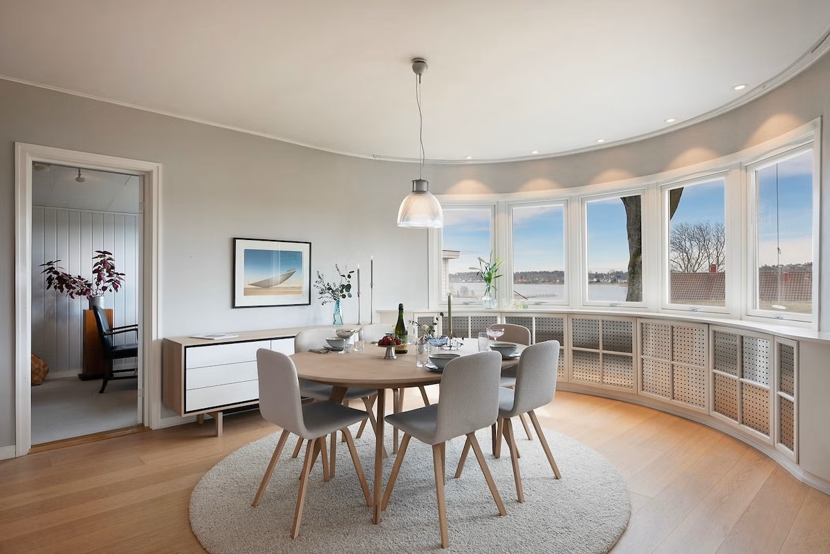 Modern and attractive house with 3 bedrooms. The house is located quietly, in the middle of a cul-de-sac with a fantastic view over the Larviksfjord, where sea and sky meet. This is recreation for the soul and a good place to be. Live with the sea right in front of you and the beautiful Bøkeskogen right behind. You have everything within reach; Bølgen cultural centre, Indre Havn, beach, Spa, town, restaurants, hiking, coastal path, training, transport. Everything within a 5-10 minute walk.