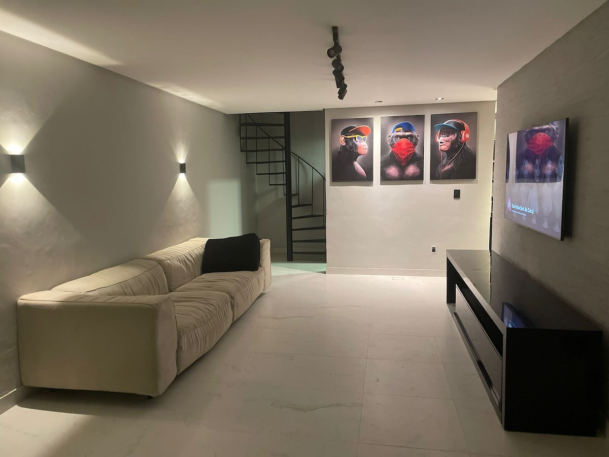 Střešní apartmá s vířivkou a výhledem na moře se střešním oknem. Velmi prostorné (65 m2). Nejlepší místo na Praia da Costa, nejlepší pláž ve Vila Velha! Plně vybavená kuchyně s různými nástroji pro bar, koktejly a skleničky. Klimatizovaný, pohodlný a útulný apartmá. Jednoduše nejlepší zážitek z ubytování ve Vila Velha! Váš pobyt zde bude perfektní! JEN PŘIJEĎTE!!!