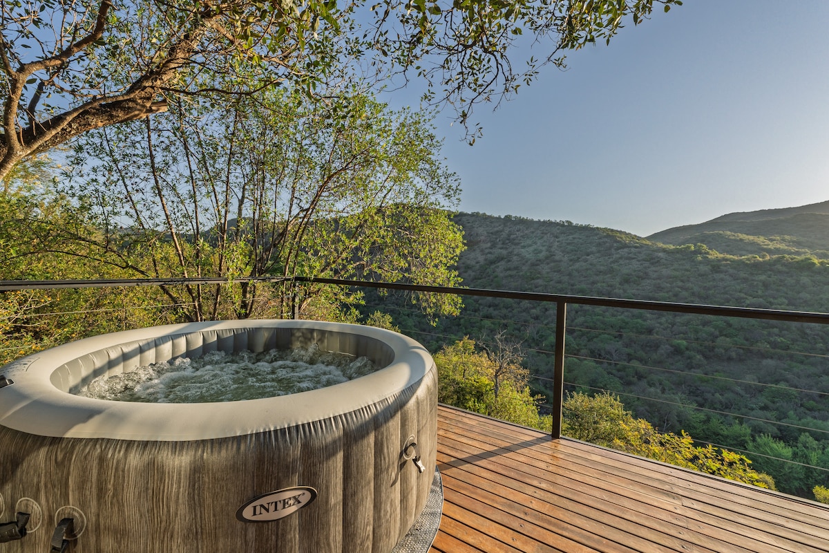 ☞ Vista panorámica a las sierras y al río ☞ Jacuzzi y reposeras para relajarse al aire libre ☞ Amplio deck con living exterior para comer y disfrutar del entorno ☞ Parrilla y cochera techada ☞ Cocina integrada completamente equipada ☞ Cama de dos plazas con sábanas, toallas de primera calidad, frazadas extras y kit de limpieza básico ☞ Aire acondicionado y calefacción por conductos tipo split ☞ Televisor y equipo de sonido