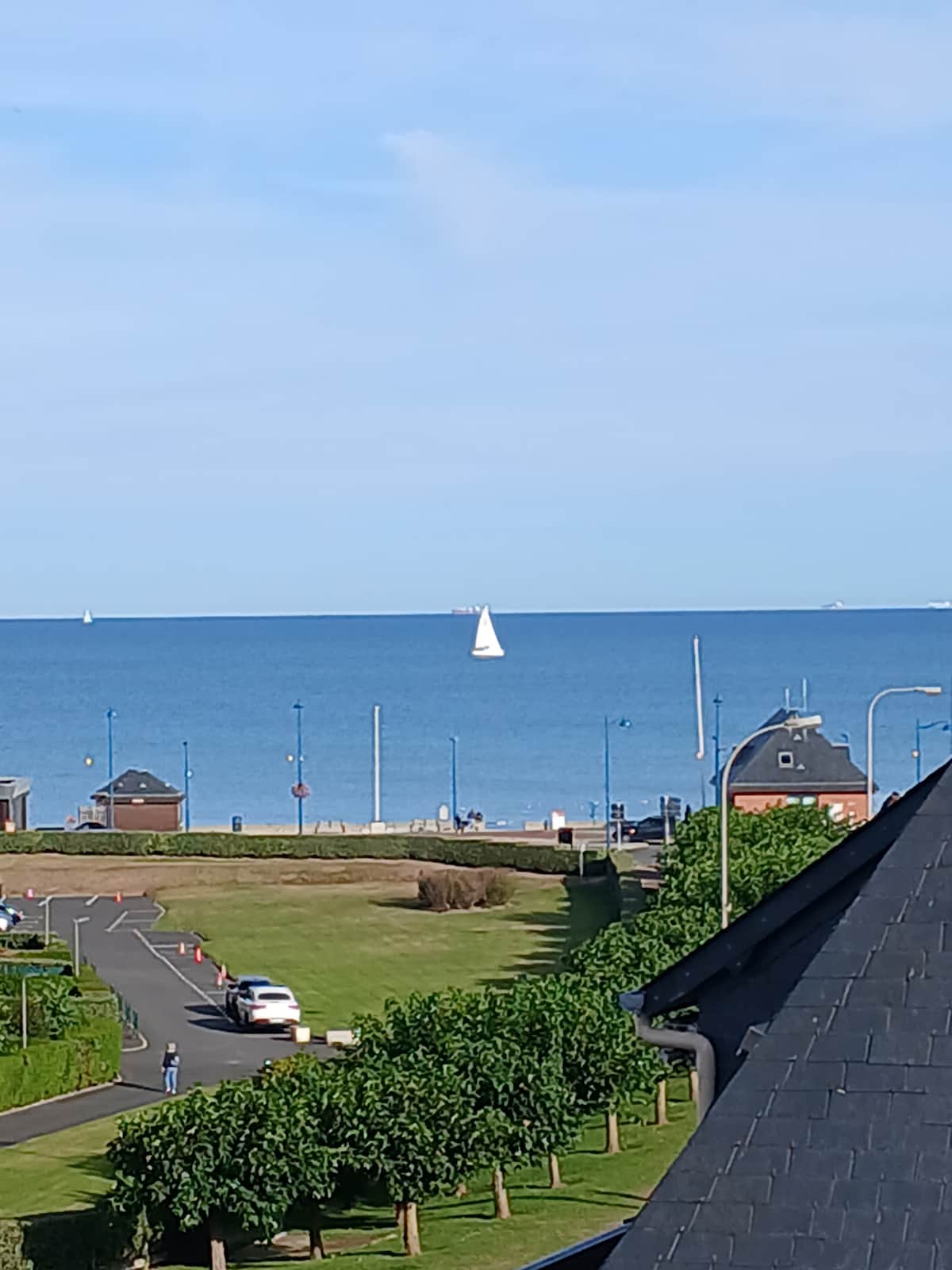 Appartement coup de cœur au dernier étage avec escaliers, vue imprenable sur la mer et sur les toits deux balcons pour déjeuner, dîner, entièrement rénové avec vue mer, à 50 m de la plage, à 2 mn du centre ville à 5mn du casino, 8 kms de Deauville (gare sncf). Vous pouvez séjourner en famille avec 1 ou 2 enfants (4 max.) en couple (2 chambres séparées en enfilade ), jeux de société et livres a dispo. Un lit parapluie pour bébé.Télétravail (wifi) Le barbecue ou la plancha sont interdits