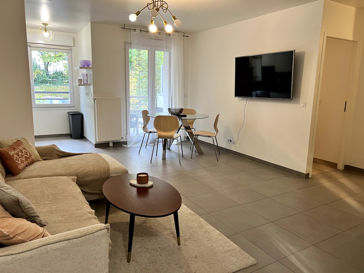Appartement de 66m2 composé d’une entrée, de 3 chambres (2 lits enfants + lit adulte 140/190), d’un salon-séjour, d’une cuisine équipée, d’une salle de douche et de toilettes séparés. Draps et serviettes fournis. Accès au Wifi. Au 1er étage d’un immeuble dans une résidence calme et arborée, équipée de jeux pour enfants. Petits commerces (boulangerie, pharmacie, supérette) à quelques minutes à pied. Gare de Sainte Geneviève des bois à 15 minutes à pied. Vous serez à Paris en 20 minutes.