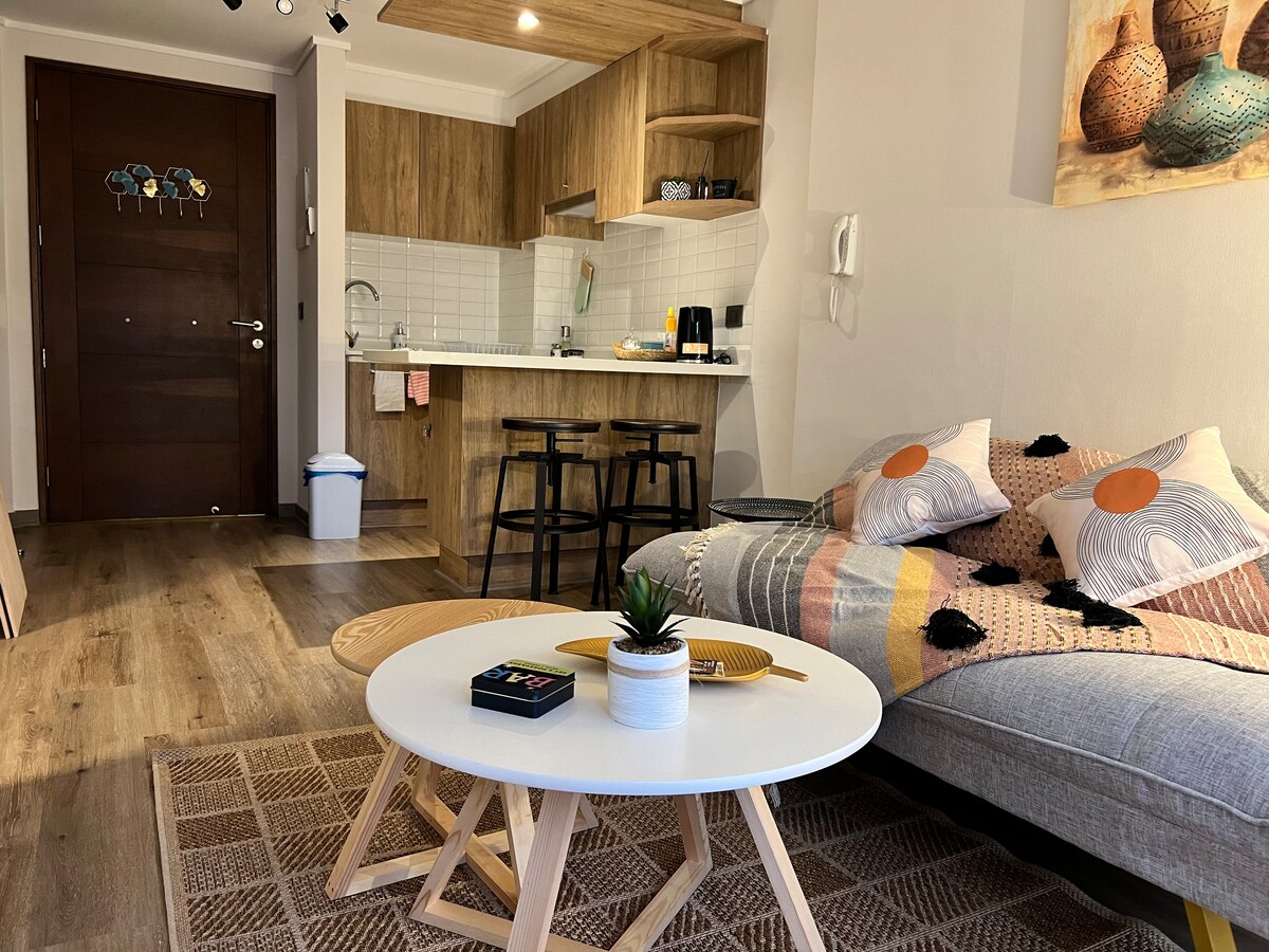 Moderní a nový apartmán, který se nachází v budově Nueva Kennedy, vybavený vším, co potřebujete pro klidný a příjemný pobyt. Nacházíme se 500 metrů od nákupního centra Parque Arauco, 100 metrů od parku Parque Araucano a 2 000 metrů od německé kliniky. Mezi jednotlivými příjezdy a odjezdy se dezinfikuje strojem vybaveným německou technologií. Budova NK má velký vyhřívaný bazén, venkovní bazén, saunu, posilovnu, 4 zasedací místnosti, 3 akční místnosti, parkoviště pro kola, zahrady.