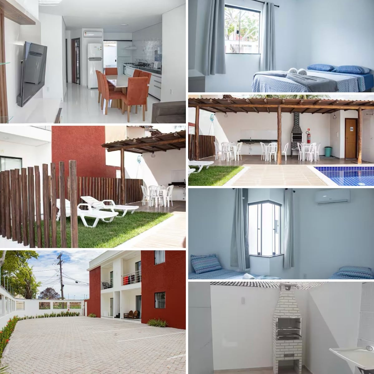 Casa duplex em condomínio fechado com 125 m2, recepção 24 horas, com 3 suítes mais um lavabo, sala, cozinha e área de serviço com churrasqueira. Serviço de limpeza e troca de enxoval de 5 em 5 dias. Smart TV em todos os quartos e sala. Ar refrigerado split em todos os quartos e sala. WiFi próprio. Cozinha equipada, Air Fryer. 2 vagas de estacionamento. Condomínio com 2 piscinas com churrasqueiras e sauna. 7 km do centro, 10 min de carro. 8 km do aeroporto, 12min.