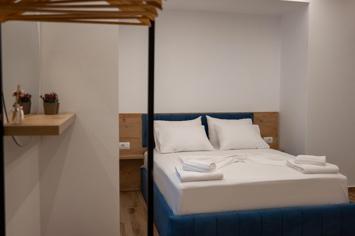 Évadez-vous dans les bleus de l'Adriatique et de la mer Ionienne pour une détente absolue dans notre Azur Room. Savourez le luxe d'un espace privé alliant confort et modernité hôtelière. Face à une pinède et directement sur la Plage, l’immeuble offre un accès immédiat au sable et se situe à proximité de : - Port de Vlora - 1.2 km - Lungomare - 1.5 km - Zone commerçante - 1.5 km - Musée de l’Indépendance - 1.5 km - Vieille Ville - 3 km - Monastère de Zvernec - 7 km - Lagune de Narta 🦩 - 18 km