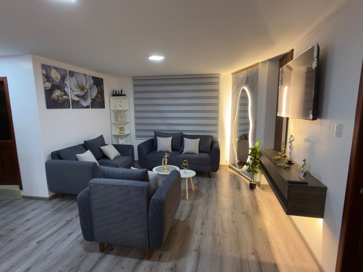 Moderní a elegantní byt ve zbrusu nové budově, s bezkonkurenční polohou v Riobambě. Jen pár minut od centra, kamkoliv se dostaneš pěšky a je to velmi blízko stadionu a Av. Daniel León Borja, což jsou nejnavštěvovanější místa ve městě. Prostorné, pohodlné a vybavené pro ubytování až 7 osob. Ideální pro rodiny, skupiny nebo cestovatele, kteří hledají pohodlí, odpočinek, styl a snadný přístup k hlavním atrakcím města. K dispozici je bezplatné parkování.