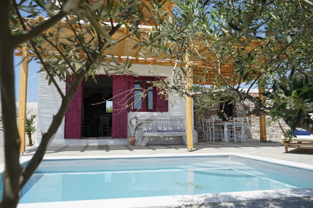 Tradiční vila v kykladském stylu s bazénem ve vesnici Aliki. Nachází se 500 metrů od centra Aliki s restauracemi a kavárnami a hlavní pláží. Nachází se v klidné venkovské oblasti, 12 kilometrů od Parikie a 2 kilometry od letiště Paros. (Absolutně žádný hluk, nad domem neprolétají letadla). Nachází se také 50 metrů od autobusové zastávky s častým spojením na letiště a do hlavního města a 2 km od oblíbené pláže Faragas.