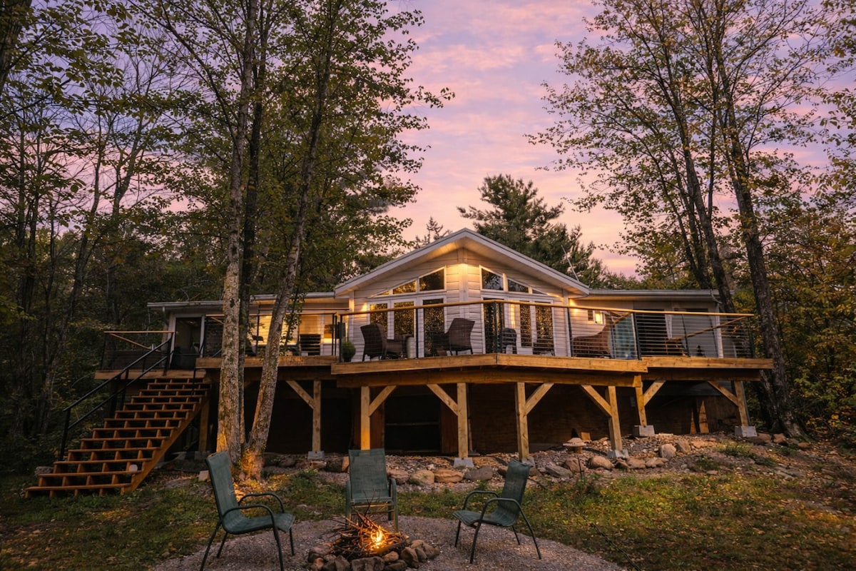 Soukromý pozemek na nábřeží, kde se pohodlně vyspí 4 osoby, v blízkosti národního parku Voyaguers s vířivkou, saunou, přístřeškem a kajaky. Soukromá terasa nabízí krytý obývací prostor, gril a spoustu divoké zvěře. Psi do 13,6 kg jsou vítáni. Hosté, kteří si rezervují, musí být starší 20 let. Všichni hosté mladší 18 let musí být v doprovodu rodičů nebo opatrovníků.