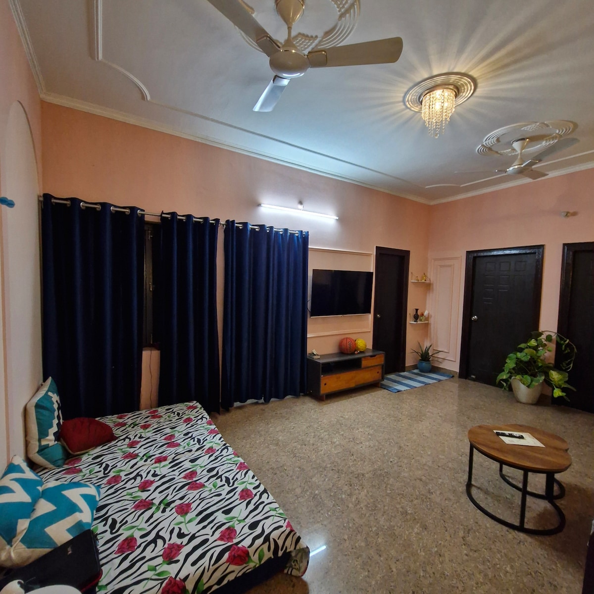 Ubytujte se v tomto hnízdě inspirovaném zelení Vrindavanu – zamilujte se do menších detailů tohoto bytu, které vám připomínají les, absolutní zelení, která vám pomůže relaxovat a omladit se během vaší cesty do dhamu! 3 km (10 minut) od Prem Mandir 3,5 km (12 minut) od ISKON 4 km (15 minut) od Banke-Bihari Tento zelený ráj je dokonalou kombinací přírody a pohodlí a je navržen tak, aby ti pomohl se uvolnit, přemýšlet a znovu se spojit. Oddechni si v útulném salonku nebo si vychutnej šálek čaje na balkoně