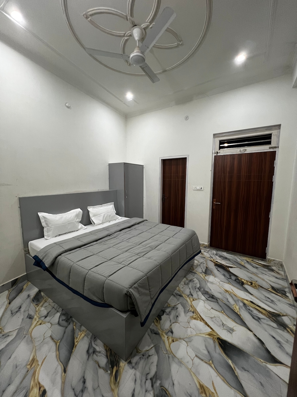 Náš apartmán je navržen tak, aby tě ponořil do božské atmosféry Vrindavanu, s promyšlenými uměleckými díly Radha-Krishna a klidnými detaily. Balkon je klidné místo ideální pro relaxaci. Zažijte luxus ve Vrindavanu! Tento apartmán, který se nachází několik minut od Prem Mandir, chrámu ISKCON a Banke Bihari, nabízí nesmírný klid a moderní pohodlí. Užij si samoobslužný proces ubytování, vysokorychlostní Wi-Fi, plně vybavenou kuchyni, zásoby toaletních potřeb a ochotného správce, který ti poradí, co v okolí zkusit.